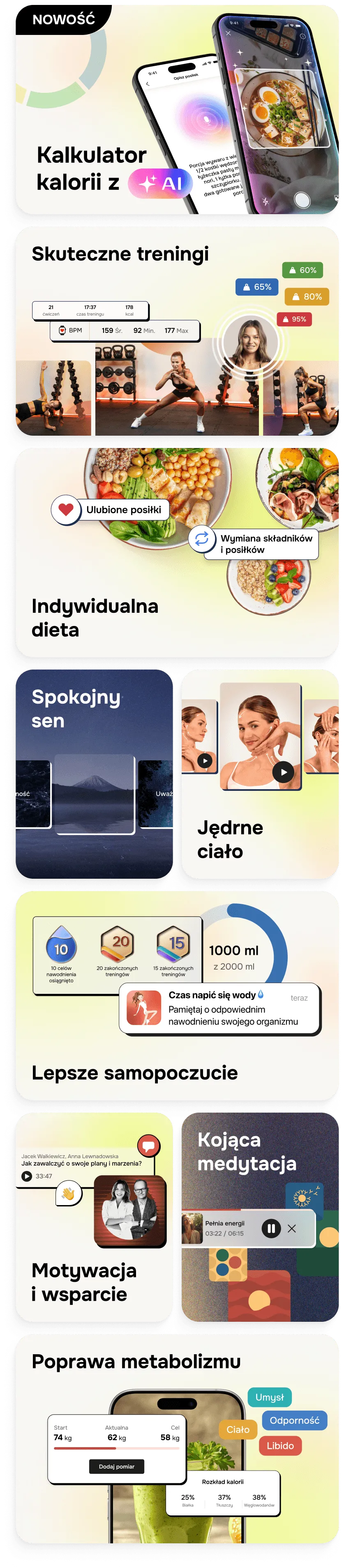 To inteligentna przestrzeń, w której Twoje nawyki układają się w progres — automatycznie. Kontrolowanie kalorii i trzymanie się planu jeszcze nigdy nie było tak proste.